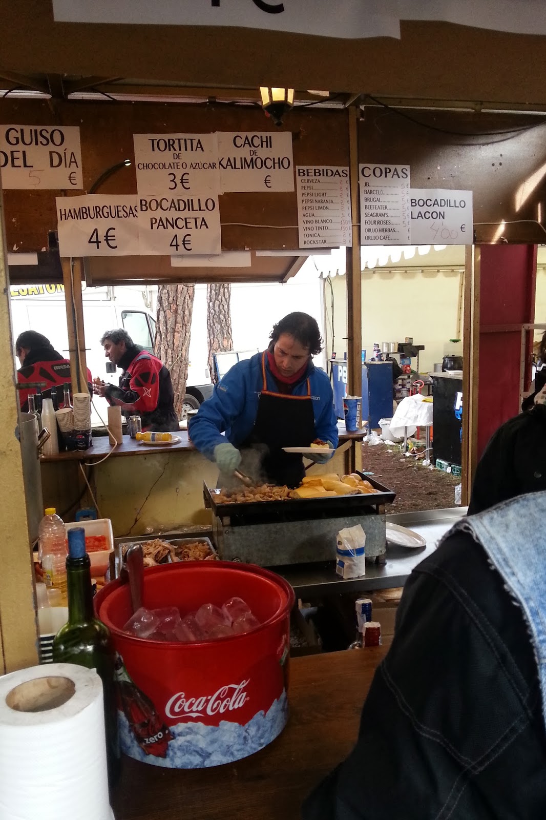 Dejamos las motos por el campo y nos metemos donde están los puestos de todo tipo, La primera parada, vemos que están dando chocolate caliente en unos de los puestos y con el frío que llevamos en el cuerpo nos vamos de cabeza a por uno. No nos importa esperar la cola. Solo pensamos poner ese vaso de chocolate caliente entre nuestras manos.