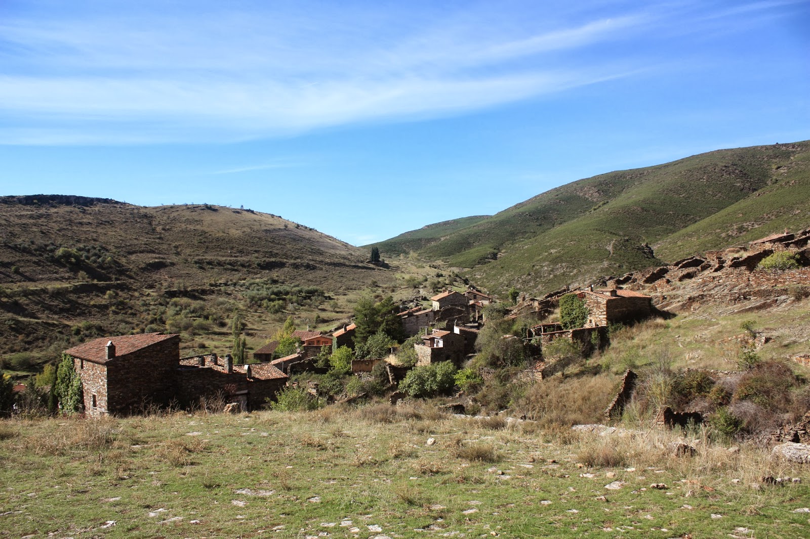 Llegamos al principio del pueblo, no se puede entrar con vehículos al interior. Hay que dejar las motos antes de llegar. Para llegar al pueblo son solo 150 metros así que no hay que andar nada.