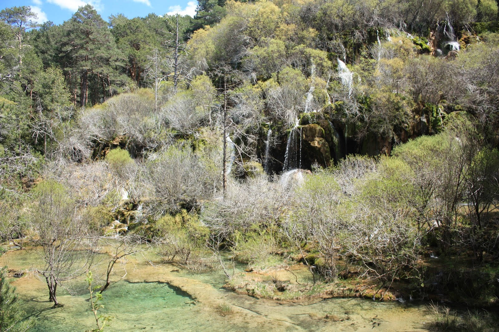 Bajamos del cerro, nos ponemos dirección al Nacimiento del rio Cuervo despues de pasar por la localidad de Tragacete. Cuando vas cruzando el pueblo tienes un desvío a la derecha. Te metes y es un camino medio de tierra medio de asfalto. En el lateral derecho va el rio Jucar y como a dos kilómetros hay una caída de agua, No pude hacer fotos por que te tienes que meter por un sendero, desde el camino no me gustaba como se veía. Recomiendo entrar y llegar hasta la caída de agua. Kaori tiene que pensar que estoy un poco loco por los sitios que me meto aveces.