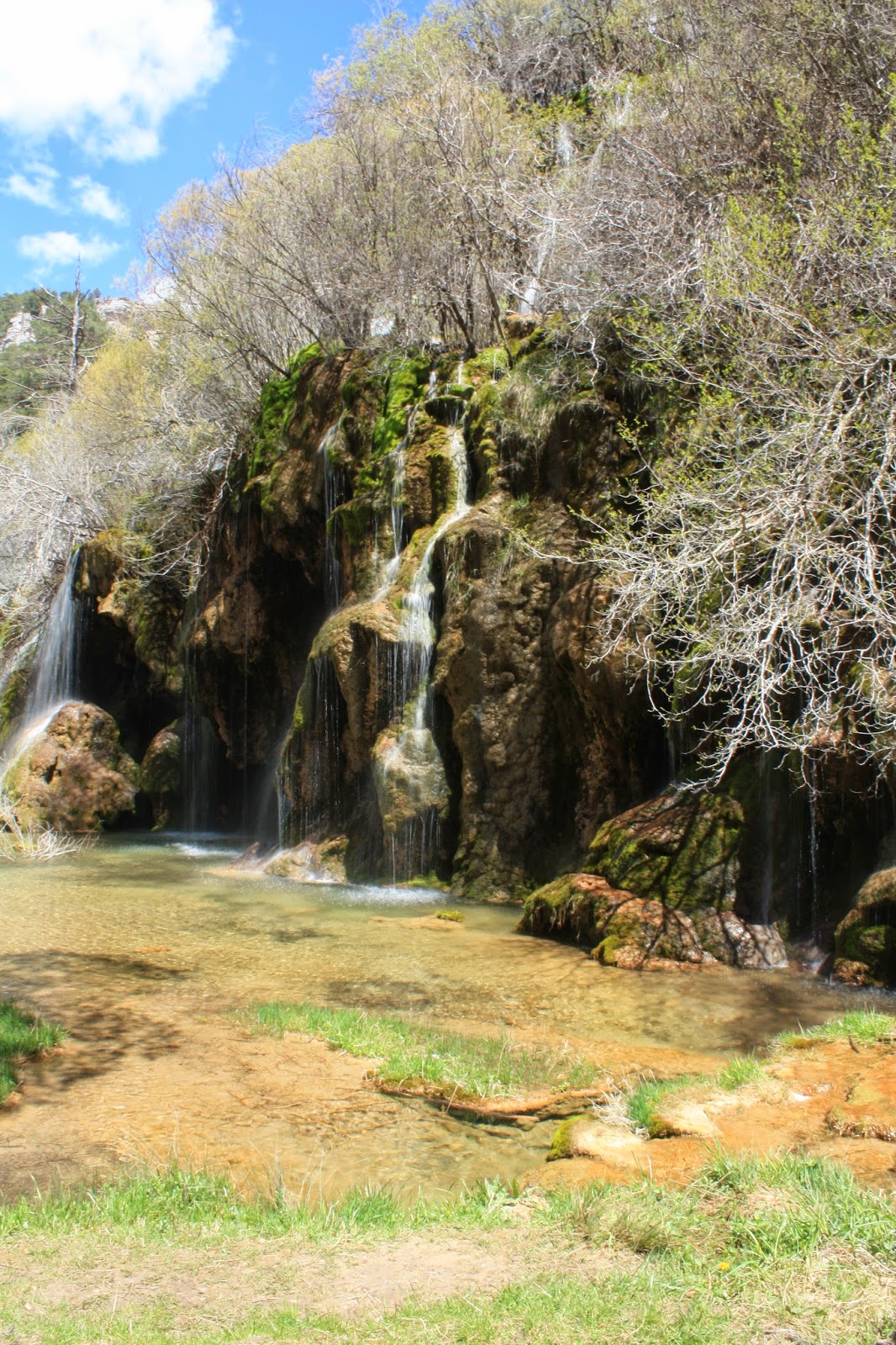 Nada mas entrar llegamos a un parking donde podemos dejar la moto. Con cuidado donde dejarla por que el terreno en algunos sitios es blando y se puede ir al suelo. Desde el parking vas por una senda hasta el nacimiento del río cuervo son unos tres minutos andando. Luego allí existen sendas realizadas para verlo desde distintos puntos de vista donde se pueden sacar impresionantes fotos.