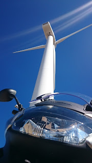 Nada mas pasar el pueblo, primero nos vamos adentrando en un pequeño bosque y después empezamos a subir el puerto de la Lancha de 1485m. Al fondo vemos unos molinos eólicos y se van haciendo enormes cada vez que me voy acercando a ellos.