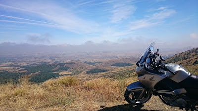 En el final de esa recta eterna comenzamos a subir el puerto de la cruz de hierro de 1457 m donde podemos ver unas vistas impresionantes de toda la zona que rodea a Villacastin. Entramos por un camino de tierra el cual se puede ir bien en moto y seguro que puedes llegar lejos haciendo el camino de la hilera de molinos eólicos que se encuentran en la cima.