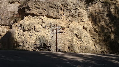 Entro por este camino que ya de un principio hay un cartel que pone que no se puede ir a mas de 18 km por hora. Fijaros el camino, justo es eso, un camino y no una carretera,